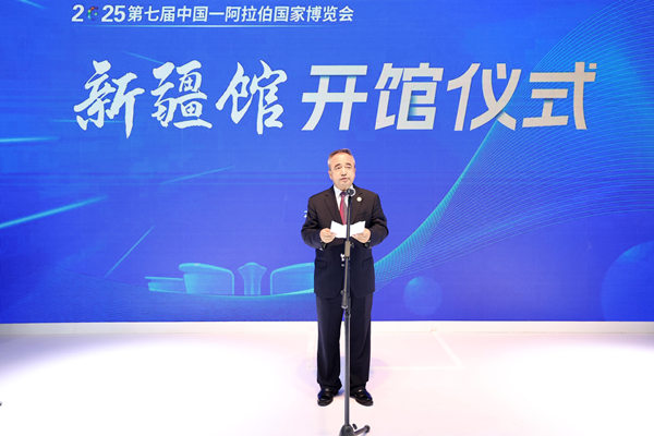 艾爾肯·吐尼亞孜在致辭中表示,新疆作為絲綢之路經濟帶核心區,近年來錨定在國家工作全局中的“五大戰略定位”,完整準確全面貫徹新時代黨的治疆方略,加快構建特色優勢產業集群,不斷加大高水平對內對外開放,加快打造亞歐黃金通道和向西開放的橋頭堡,持續深化與全球伙伴的經貿合作。第七屆中阿博覽會新疆館不僅是新疆發展成果的集中展示,推動區域合作、深化互利共贏的重要平臺,更能讓大家看到一個開放自信、創新進取的新時代美好新疆。新疆開放的大門將會越開越大,真誠歡迎國內外企業和各界人士來疆投資興業,共享發展機遇、共創美好未來。