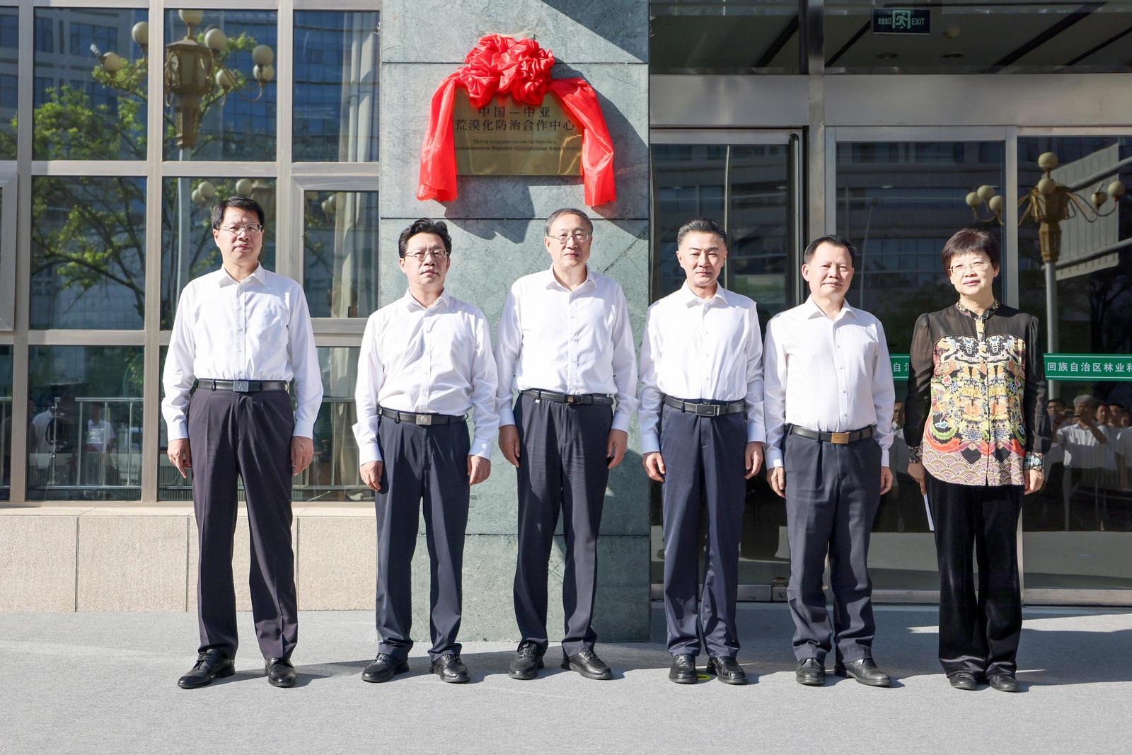 7月30日,中國—中亞荒漠化防治合作中心在自治區林業和草原局掛牌。李邑飛、張雨浦、孫煒東、唐芳林為合作中心掛牌。