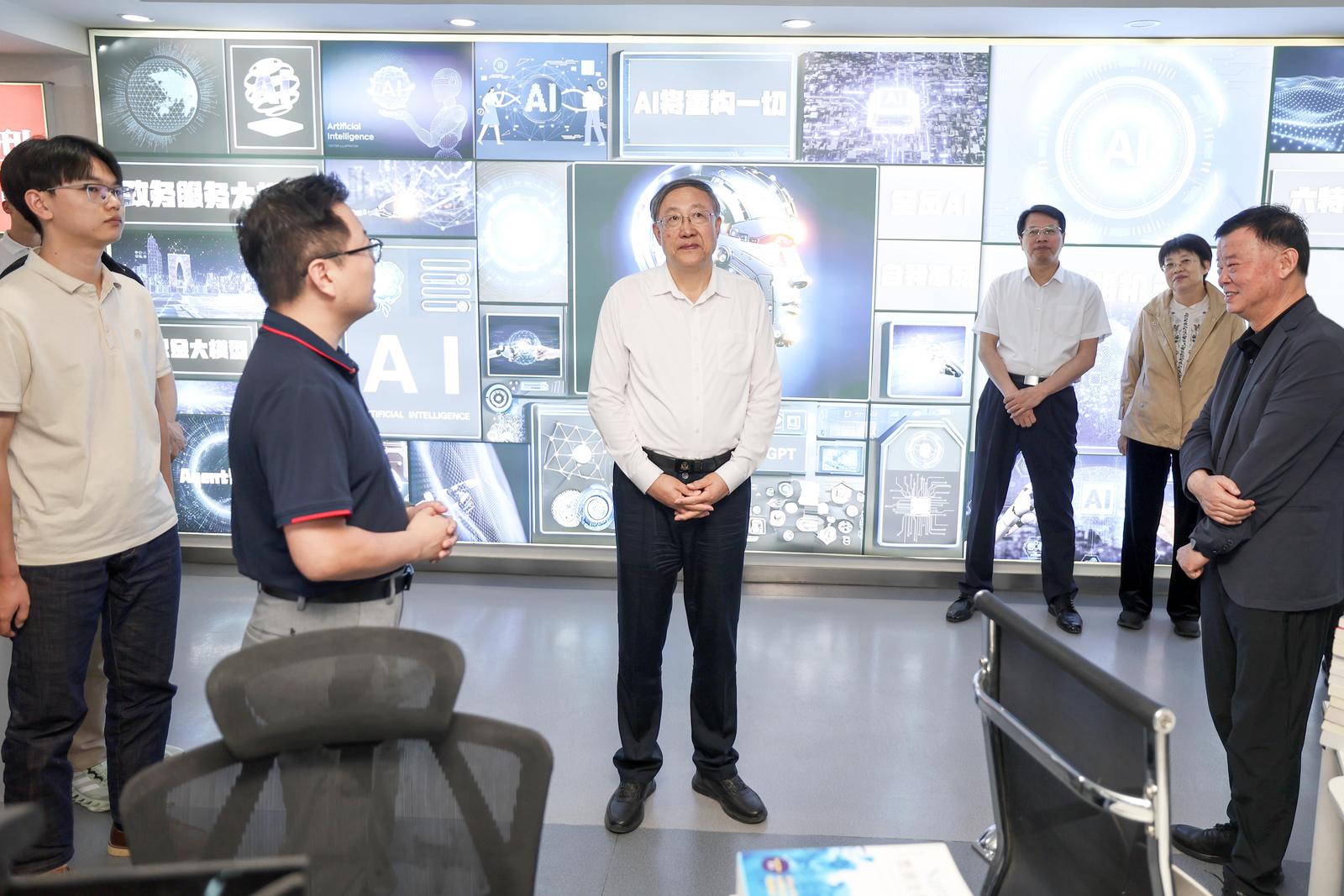 李邑飛在寧夏希望信息產業公司,調研企業穩崗拓崗、科技成果轉化應用等情況。