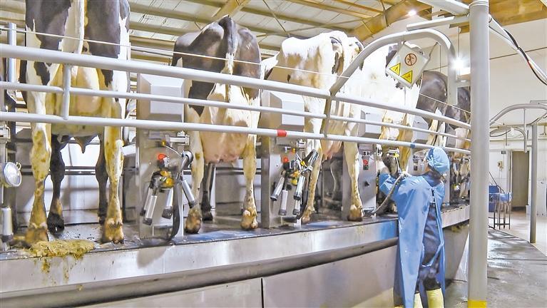 擠奶大廳里,海保軍的妻子普月娥正在忙碌。“過去打零工,東家干完愁尋下家。如今我倆一起上班,下班還能陪孩子寫作業。這日子才算真正過了起來。”普月娥說。