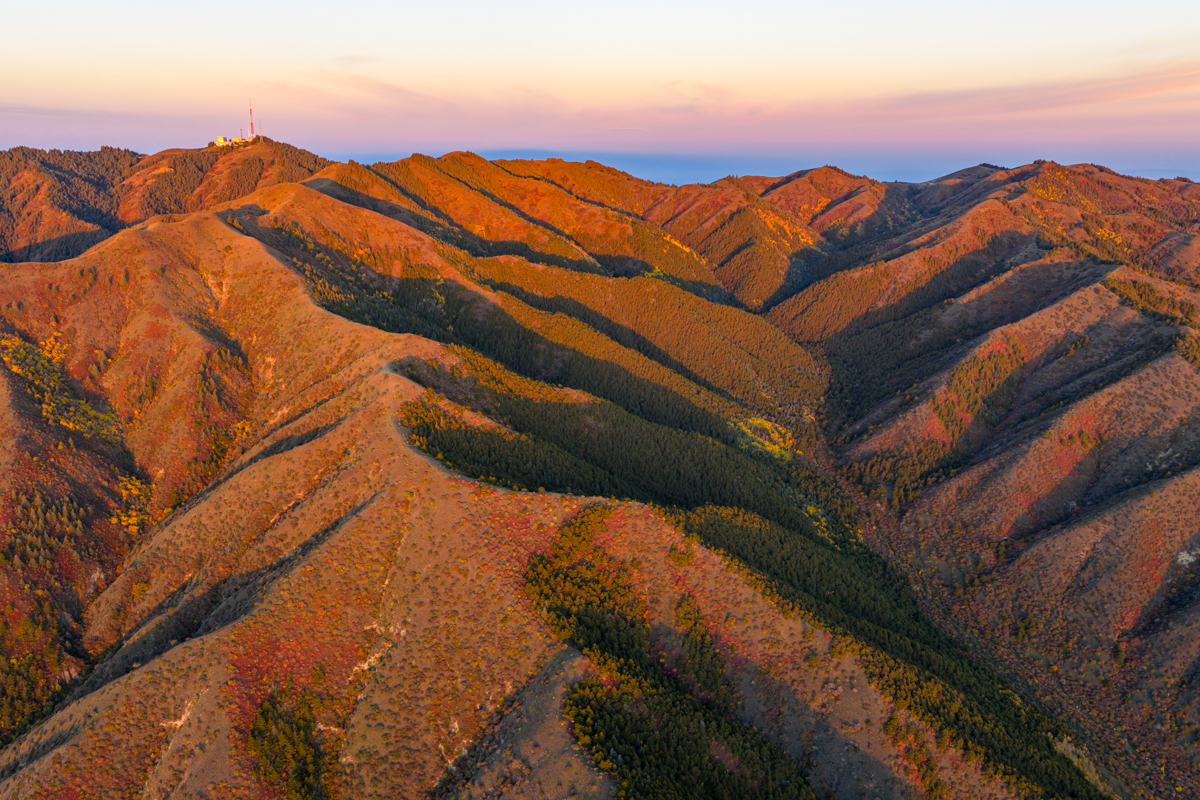 近日,寧夏羅山在秋日暖陽的照耀下,展現出令人陶醉的壯美畫卷。連綿起伏的山巒,植被色彩斑斕,金黃、橙紅與深綠交織。山間云霧繚繞,似輕紗般為羅山增添了幾分神秘。當朝陽升起,暖暖的陽光灑在山巔,整個羅山被染成橙紅色,美不勝收。 寧夏新聞網記者 祁瀛濤 攝