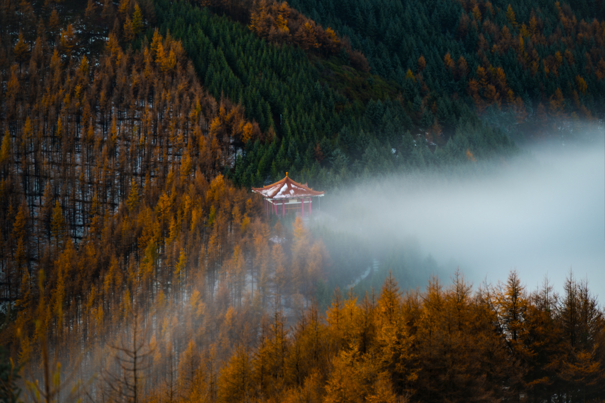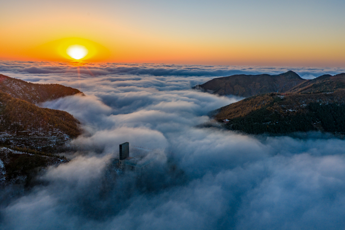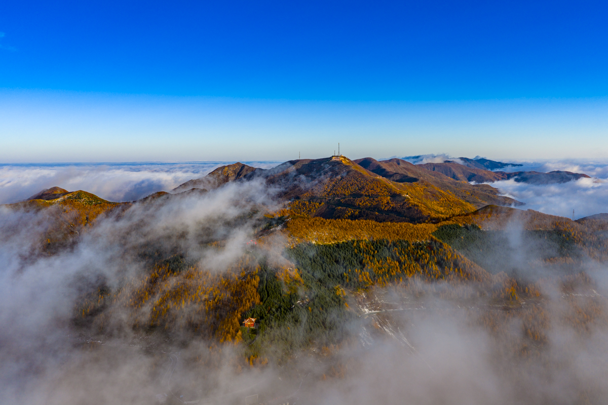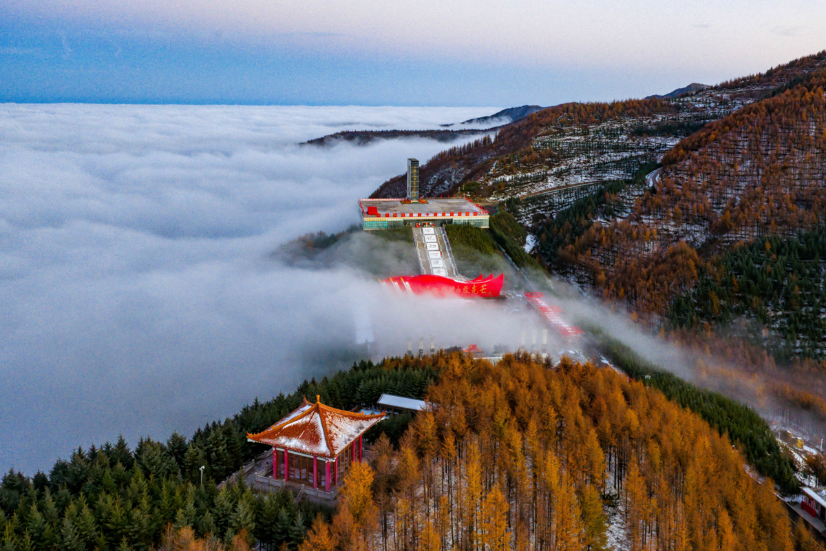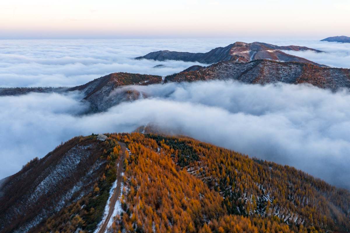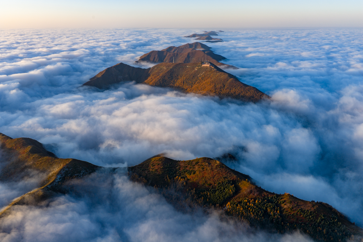 秋到六盤山,仿佛踏入了一幅絢麗的畫卷。山巒被秋色浸染,金黃與深綠交織。云海翻騰,如白色的浪濤在山間涌動,時而將山巒遮掩,時而又悄然退去。當夕陽西下,余暉灑在云海與山林間,如夢如幻。 寧夏新聞網記者 祁瀛濤 攝