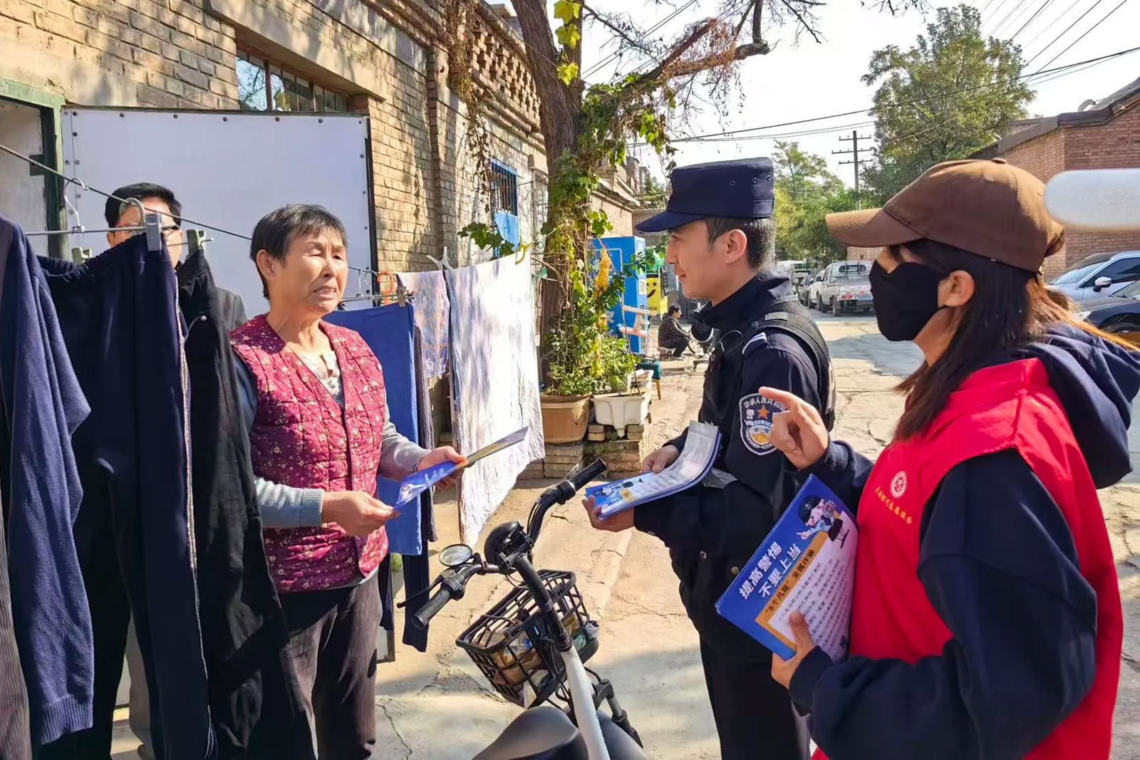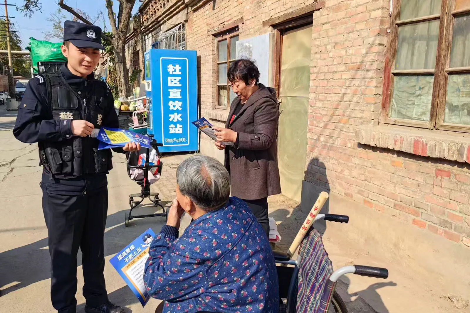 “前幾天,西夏區一個老大爺接了一個陌生電話,點擊了鏈接,就被騙了3萬元。叔叔阿姨們,你們有啥不明白的就問我,記住外地的陌生電話不要接,更不要點擊陌生鏈接。”反詐宣傳一路講完,李柏良和童碩拎著一袋水果,熟門熟路地敲開了獨居老人王阿姨的家門。“王阿姨,上次說那堂‘神醫’養生課,您沒信吧?今天再來跟您念叨念叨新花樣……”這是北京西路派出所星光巷社區警務室將反詐工作融入日常走訪的一個縮影。