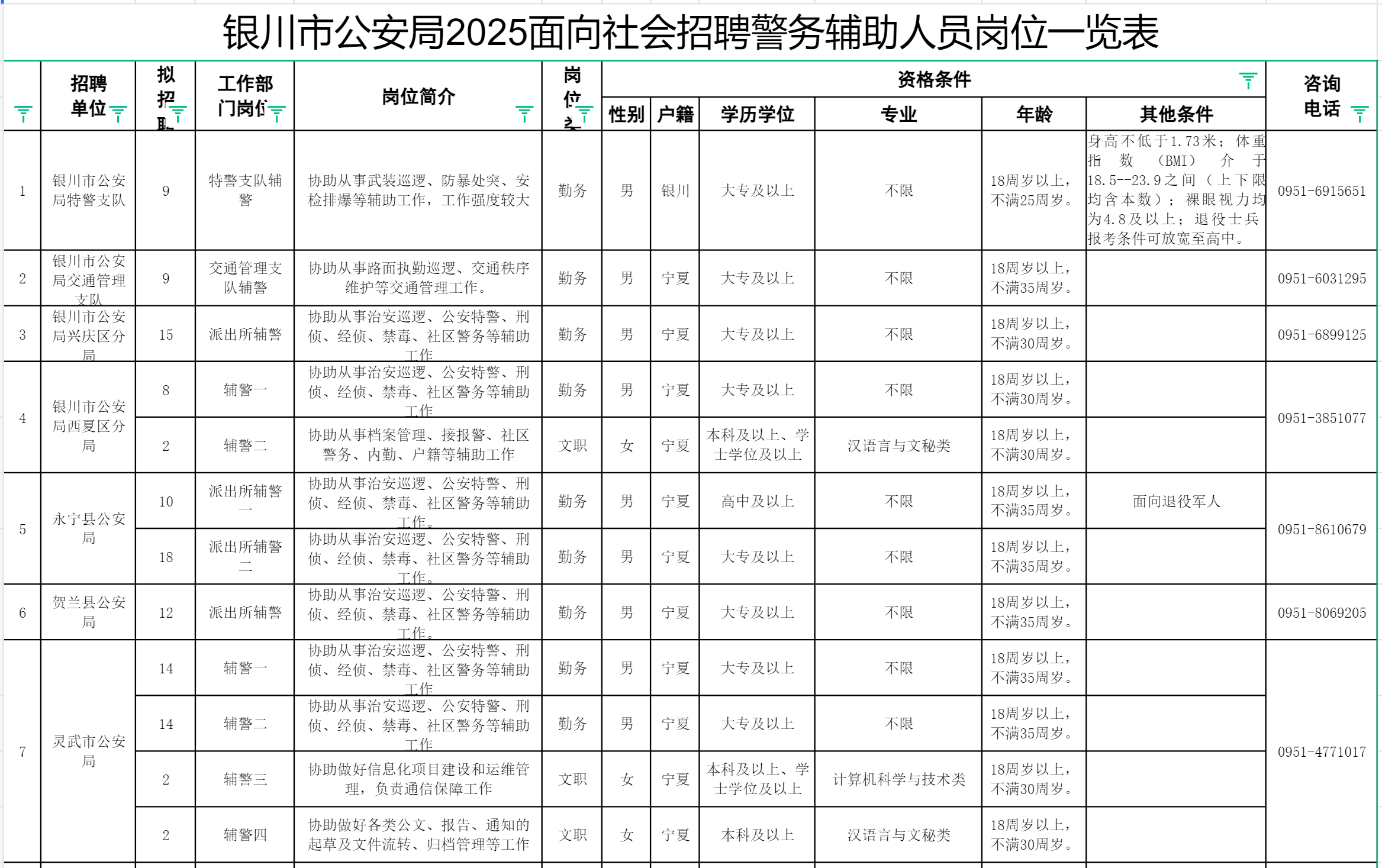 寧夏新聞網(wǎng)訊(記者 胡俊)為進一步加強基層基礎工作,有效解決公安機關警力緊缺問題,11月13日,銀川市公安局發(fā)布公告,將組織實施2025年警務輔助人員招聘工作,面向社會公開招聘輔警153名。