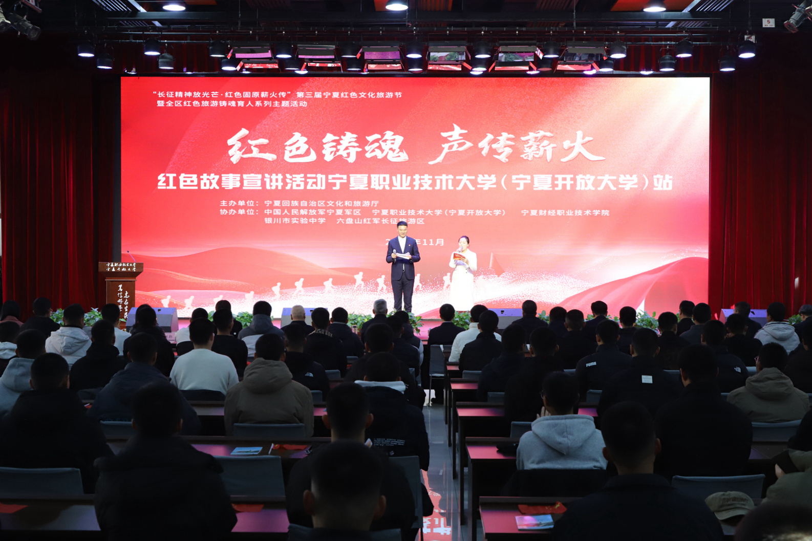 寧夏新聞網訊(記者 胡俊 文/圖)11月18日,由寧夏文化和旅游廳主辦的“紅色鑄魂 聲傳薪火”紅色文化進校園主題宣講活動在寧夏職業技術大學舉行。此次活動作為第三屆寧夏紅色文化旅游節的重要組成部分,旨在推動紅色文化在青年群體中傳承弘揚。