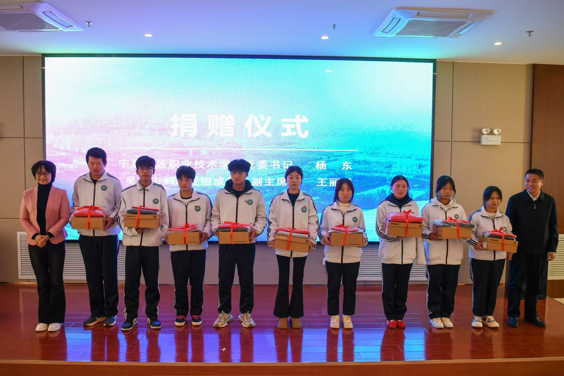 揭牌儀式上,自治區殘聯與寧夏民族職業技術學院相關負責人共同為學院揭牌,并簽署了《聯合開展寧夏殘疾人高等職業教育協議書》。同時,為關愛幫扶殘疾及家庭經濟困難學生,吳忠市婦聯現場向學院300名學生捐贈了價值92563元的愛心物資,相關領導向受助學生代表發放了物資。