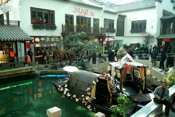 隨著鳴鑼聲響起,江南水街正式開街,嘉賓們逐一參觀了現場展示的非遺文創、農特產品等優質成果;同步發布的第四季度促消費活動視頻,全面展現了興慶區激活消費市場的扎實舉措。作為銀川首個配備全景天窗的室內江南水街,1.4萬平方米的室內主題空間內,黛瓦白墻映小橋,烏篷輕倚流水間。市民穿梭其中,沉浸式感受“不出西北,盡覽江南”的獨特韻味。這座城市級文商旅娛購體驗中心,正為塞上古城注入全新消費活力。