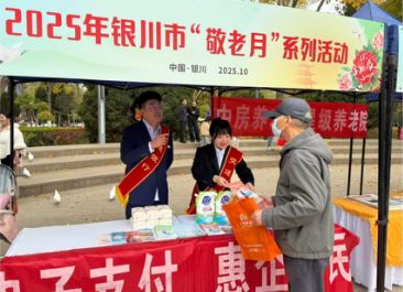近日,由銀川市民政局牽頭組織的2025年銀川市“敬老月”系列活動在中山公園鴿子廣場等多個會場溫暖啟幕。交通銀行銀川民族北街支行積極響應號召,主動融入這場以“塞上金秋·情暖夕陽”為主題的尊老敬老盛會,為現場增添了濃厚的金融安全保障氛圍。