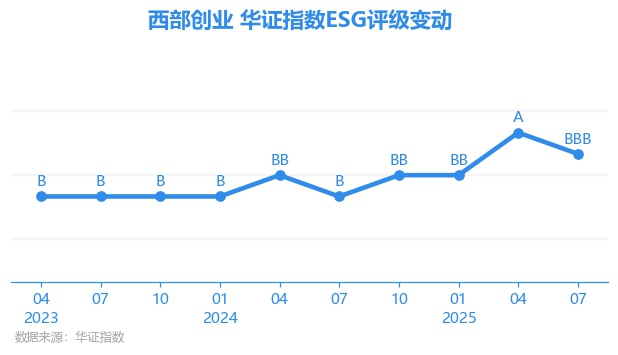 日前,華證指數公布了新一期的ESG評級結果,西部創業(000557.SZ)獲得BBB評級(華證指數評級為C起至AAA九檔,C為最低檔,AAA為其最高一級評級/AA為其第二檔),上一期(2025年4月30日)ESG評級為A。本期ESG評級在22家地面運輸行業A股上市公司中排名第1(上一期排名第2)。