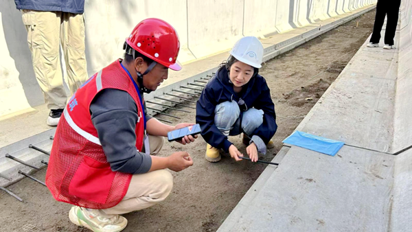 鄒璇(右)與施工人員商討青銅峽灌區更新改造施工細節。