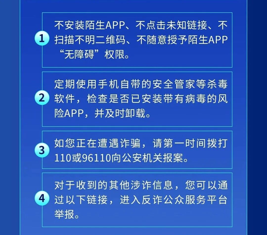 騙子常冒充短視頻、電商等平臺客服,以“解決問題”為由,誘導受害人下載遠程控制類涉詐App,獲取銀行交易密碼、驗證碼,進而轉移資金。廣大群眾,特別是老年人,一定要提高警惕,謹防上當受騙。如遇可疑情況,請及時報警。
