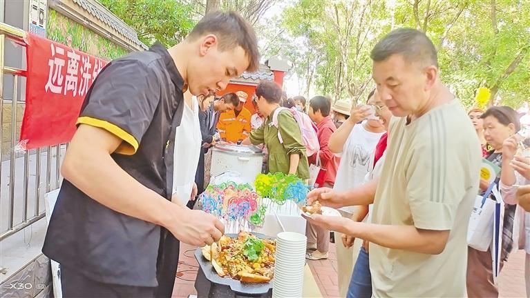 銀川市興慶區麗景街街道景墨社區,美食文化節吸引各族居民“打卡”。